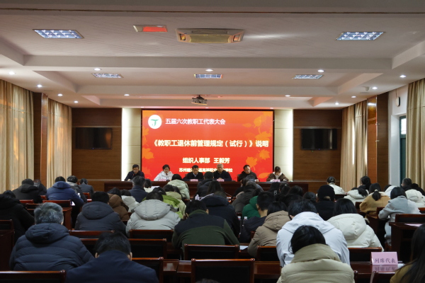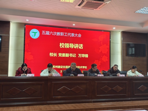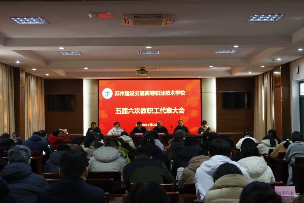 2026年1月23日下午,苏州建设交通高等职业技术学校五届六次会议在国际教育园校区四号楼102会议室隆重召开。大会在庄严的国歌声中拉开帷幕,来自全校各条战线的教职工代表齐聚一堂,共商学校发展大计,共绘学校发展蓝图。