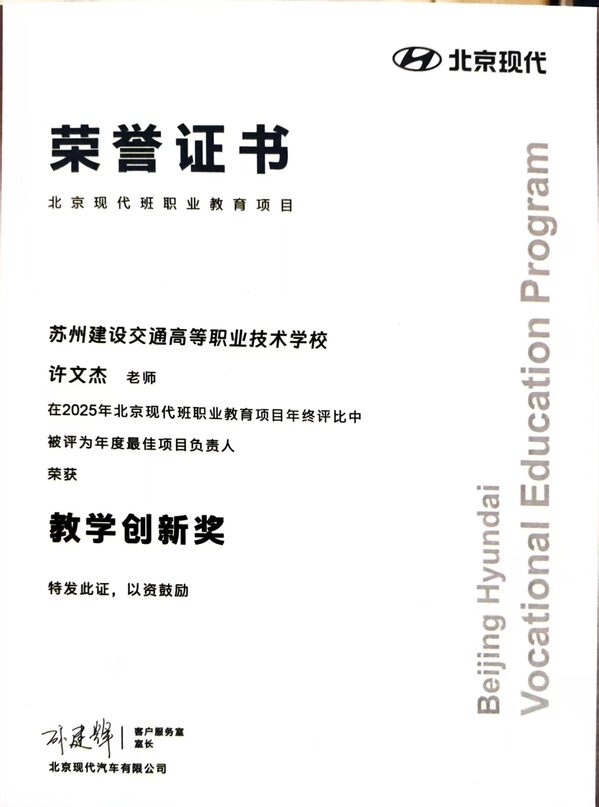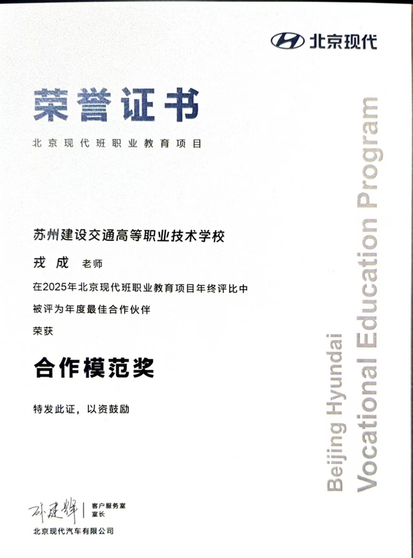 此次合作洽谈会的成功举办,为双方后续深化合作指明了方向,搭建了更为紧密的产教融合桥梁。未来,苏州建设交通高等职业技术学校与北京现代将以新能源产业发展为契机,持续完善校企协同育人机制,在人才培养、资源共享、技术共建等方面实现深度融合,为汽车产业新能源转型输送更多高素质技术技能人才,实现校企共赢发展。(图/文 周奇丰)