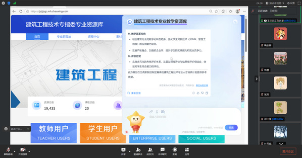 培训中,王莎莎围绕在建筑工程技术专业教学资源库建设中进行AI智能体开发及任务引擎应用展开系统讲解。她结合教学资源库中的典型教学案例,展示了超星AI智能体在教学场景中的实际应用,生动呈现人工智能在“以智助学、以智助教、以智助管”方面的实现路径。同时,她重点阐述如何借助资源管理对学科知识进行系统梳理与整合,帮助教师更好把握AI在资源整合与任务设计中的实际效用。整场培训内容紧贴教学实际,为探索教师工作“减负增效”提供了切实可行的数字化思路。