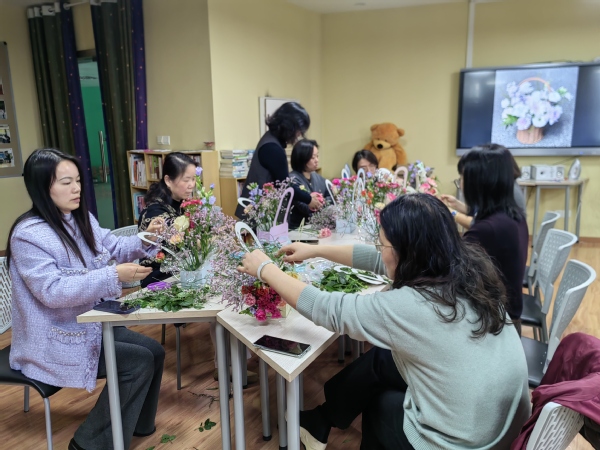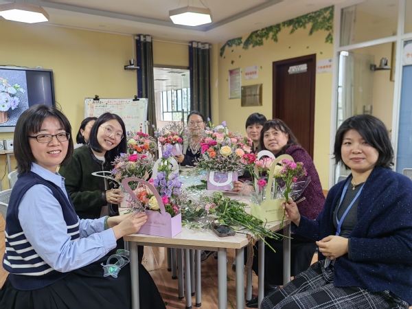 为切实关心关爱教师群体,缓解一线教学工作带来的身心压力,营造温暖和谐的校园氛围,2026年4月2日下午,我校教育园校区能量工坊开展“花香润心,减压赋能”教师花艺解压活动,15名教师参与其中,在花艺创作中舒缓情绪、放松身心。