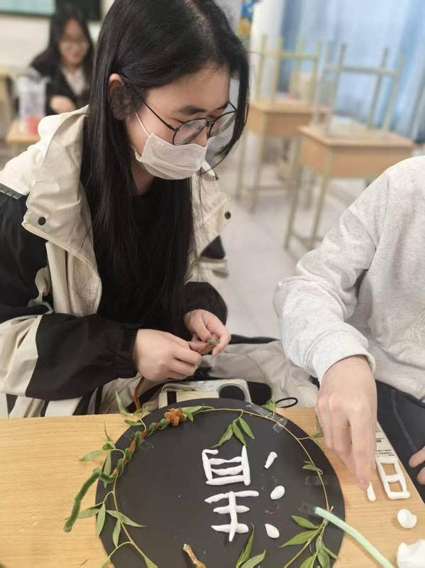活动现场庄重有序,各班代表以多样形式寄托对先烈的哀思。书法创作区,学子们凝神挥毫、泼墨寄情,用毛笔书写“清明”“寄思”“缅怀先烈”等字样,笔锋流转间,满是对革命先烈的崇敬之情与赤诚的家国情怀;手工制作区,大家巧手匠心,以柳枝为骨、彩泥为饰,精心制作柳枝圈及清明主题手工作品,指尖的创意与温度,承载着对先辈的追思,也寄托着对美好生活的祈愿。
