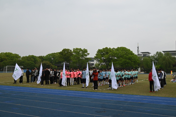 开幕式庄重有序。全体人员肃立奏唱国歌,谢永东副校长致辞,鼓励运动员奋勇拼搏、尊重对手,展现建交学子昂扬风貌。运动员代表曹艺鸣、裁判员代表刘亚军依次庄严宣誓,承诺恪守规则、公平竞技。随后,万烨锋校长宣布开幕并为揭幕战开球,宣布联赛正式启动。