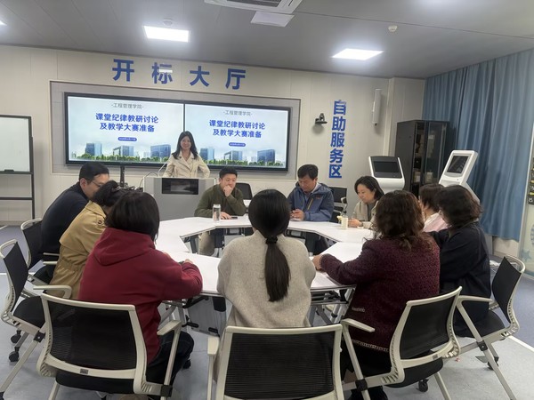 2026年4月17日下午,工程管理学院立足于“度量先锋”德育品牌,聚焦专业教学质量提升和筑好人才培养基础,于J306开展了学生纪律问题研讨和市教学大赛准备会议,共两个议程。本次活动由副院长练志兰主持,全体教师参加。